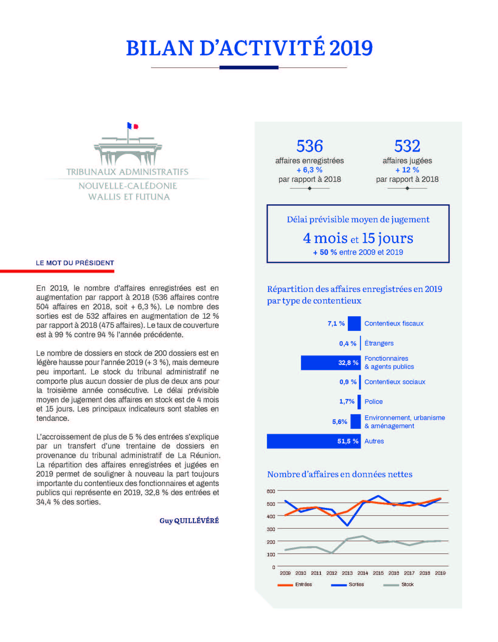 > Bilan d'activité 2019 des tribunaux administratifs de Nouvelle-Calédonie & de Wallis-et-Futuna